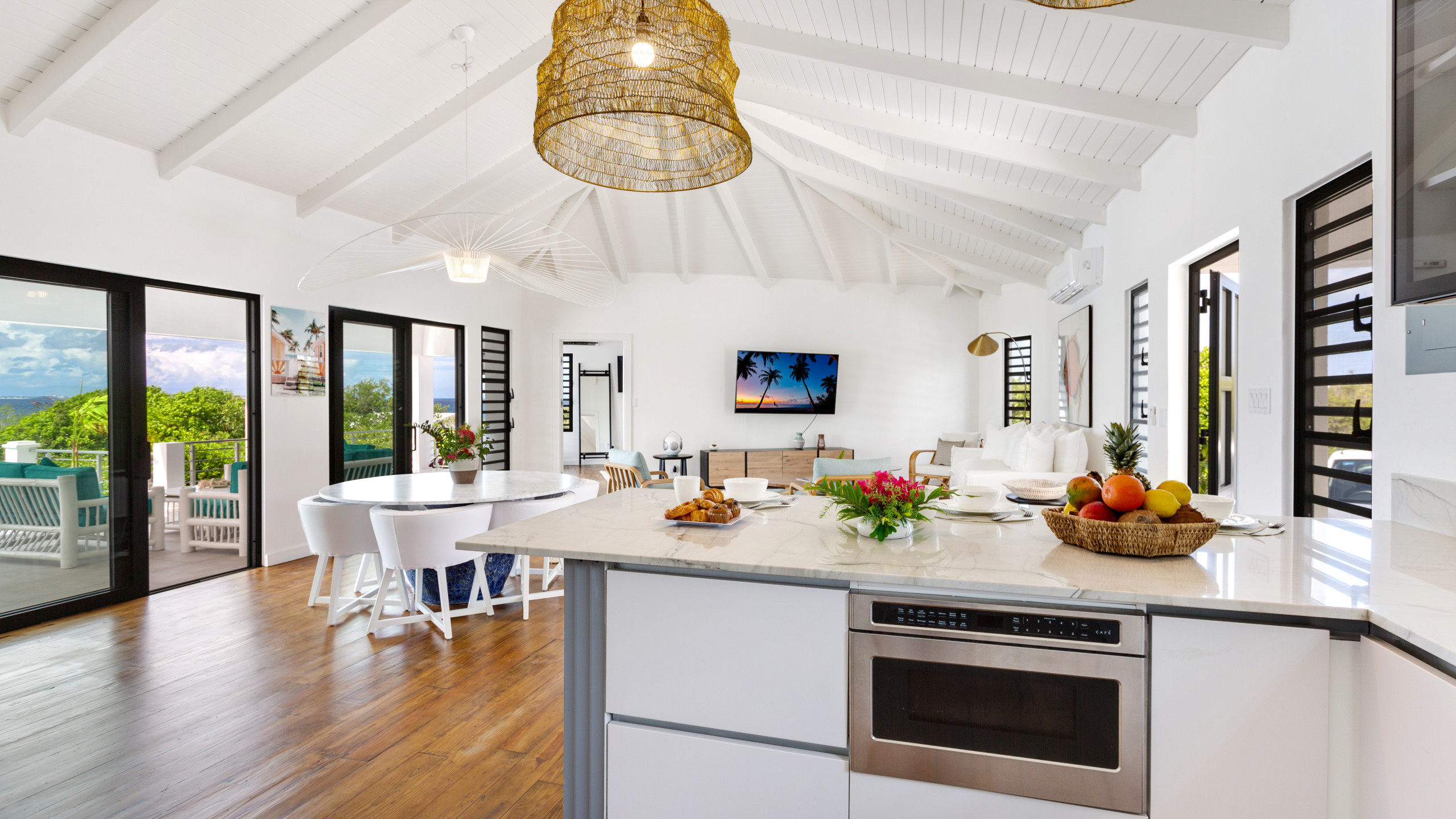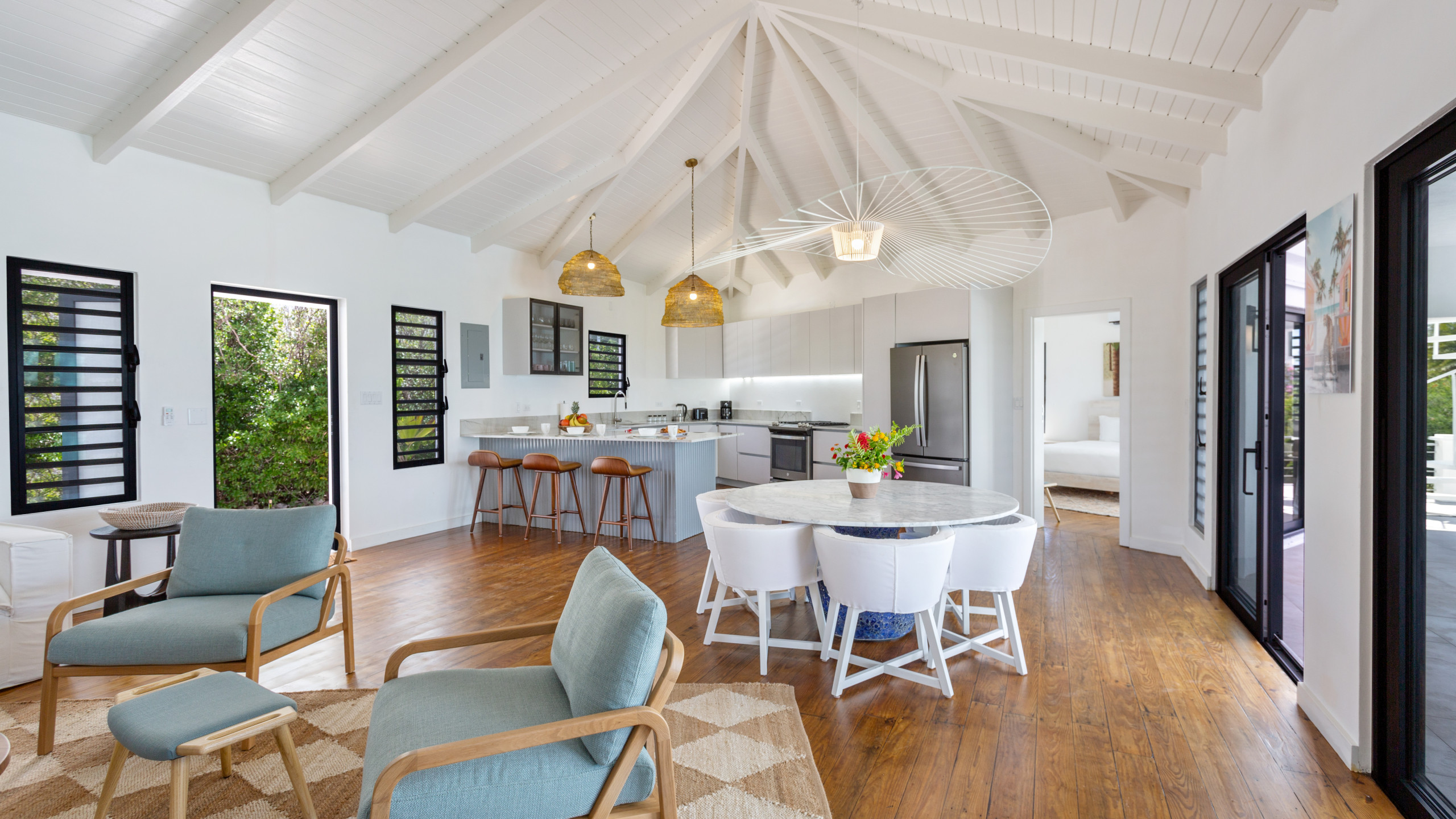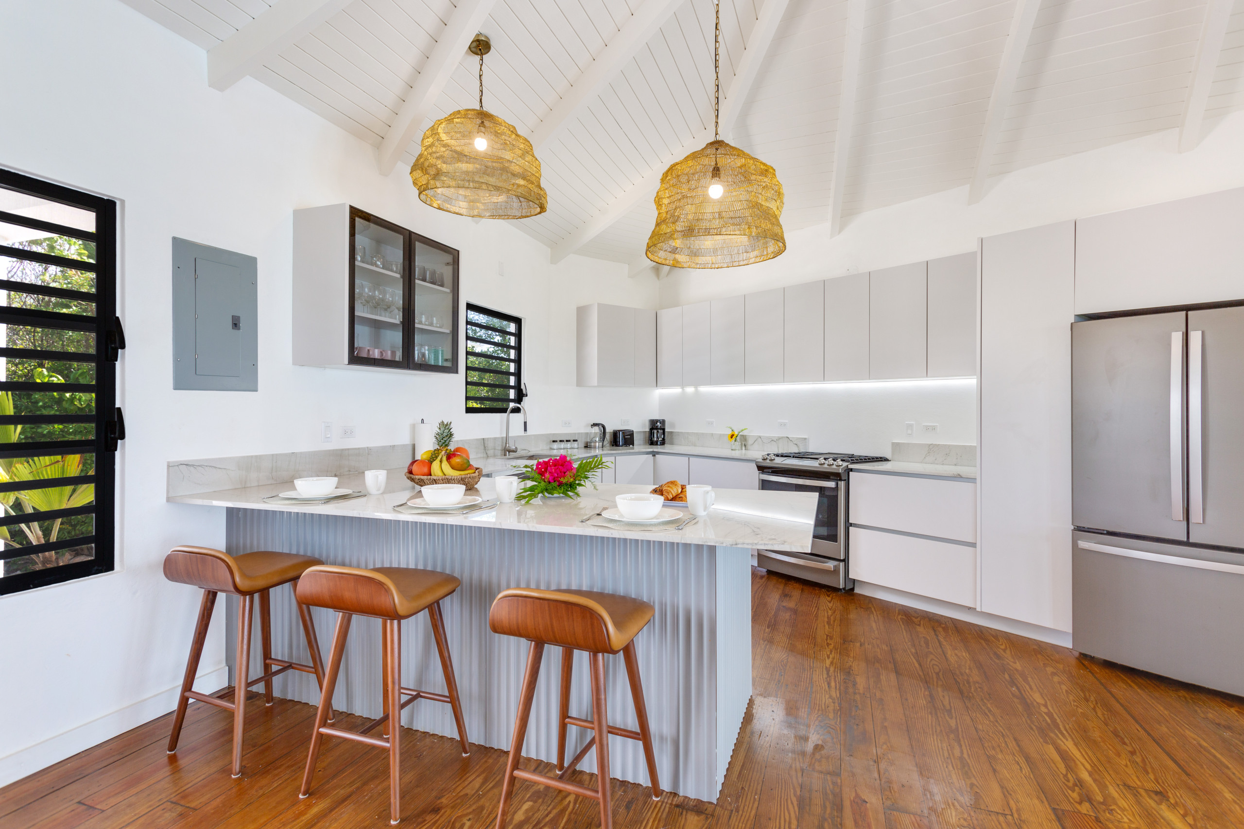 Recently renovated, the villa effortlessly blends classic Caribbean features—like high ceilings and hardwood floors—with contemporary design, sleek finishes, and modern furnishings. The open-plan living areas invite natural light and ocean breezes, while the state-of-the-art gourmet kitchen, outdoor dining pavilion, and sun-soaked terrace provide the perfect backdrop for leisurely meals or cocktail evenings by the pool.