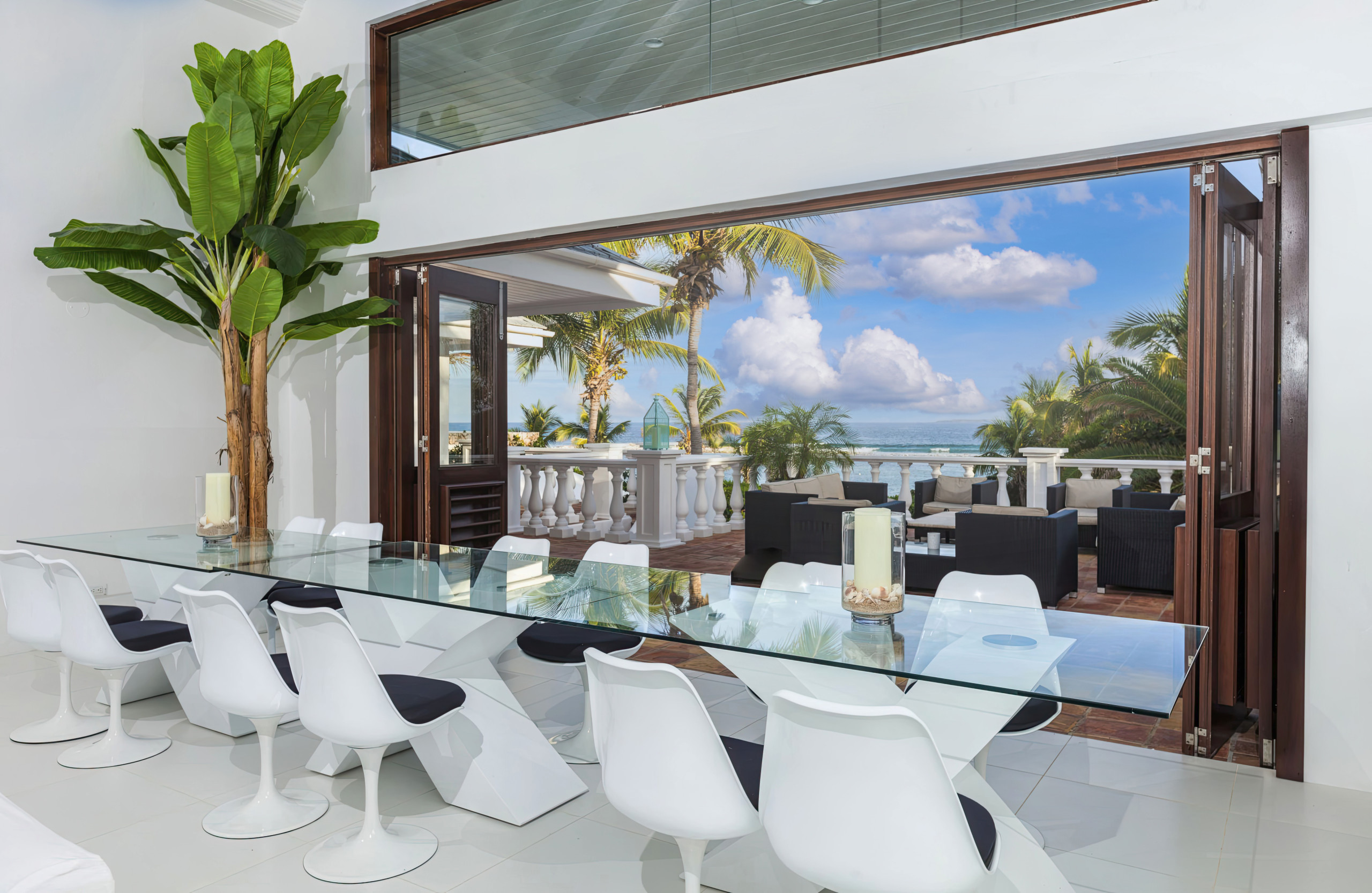 The villa’s outdoor spaces are equally breathtaking, with tranquil water gardens, multiple terraces, and private beach access offering the perfect balance of seclusion and beauty. Expansive decks and pools provide ideal venues for both intimate moments and grand events.