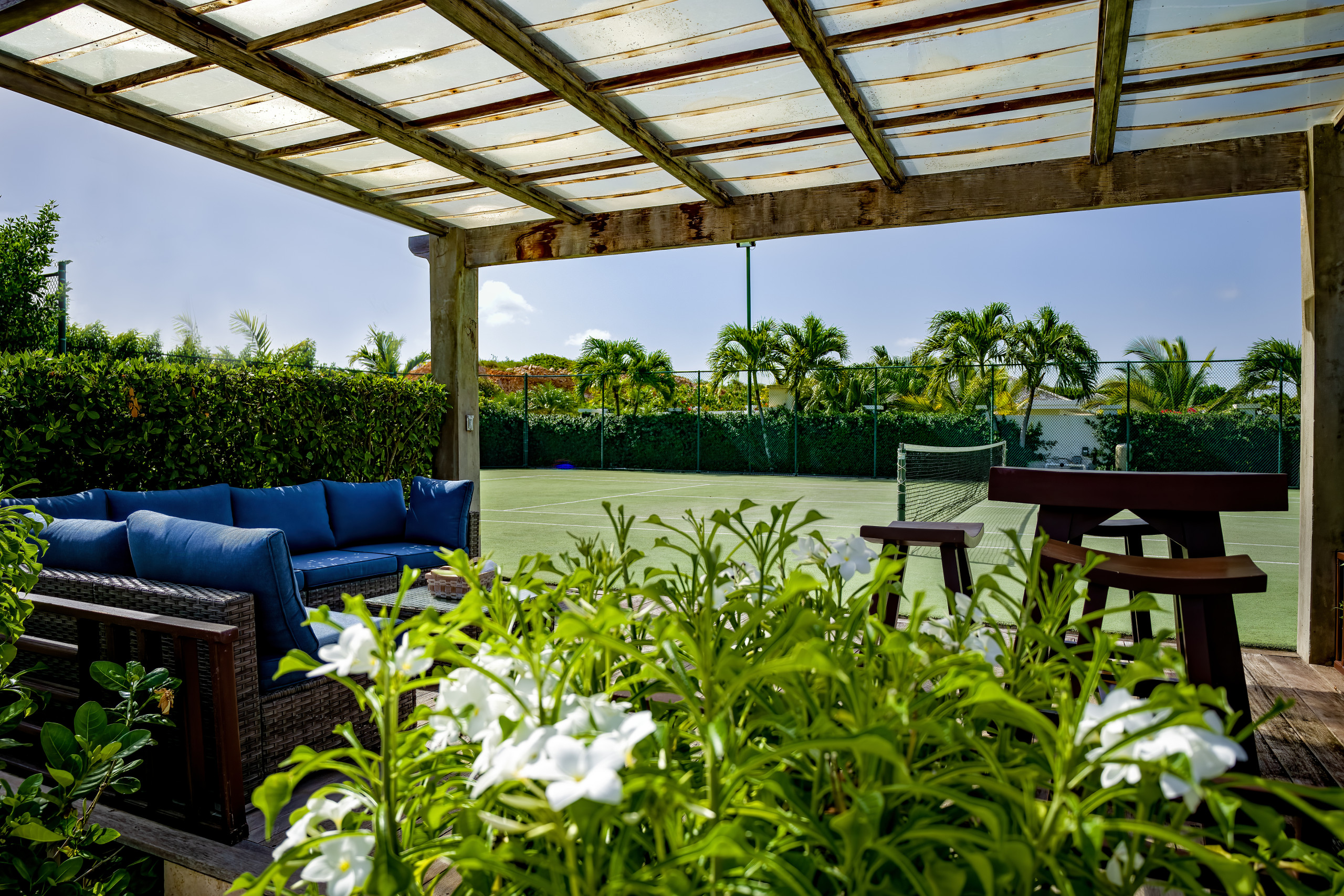 Indigo’s outdoor amenities are extraordinary. Two pristine swimming pools, including one on the beach deck, provide direct access to soft sands and sparkling waters, ideal for swimming, snorkeling, or simply lounging in the sun. A private tennis and pickleball court, along with a fully equipped fitness suite, caters to active guests, while multiple terraces and shaded pavilions offer idyllic spaces for alfresco dining, sunset cocktails, or quiet reflection. A beachside barbecue area ensures unforgettable gatherings under the stars.