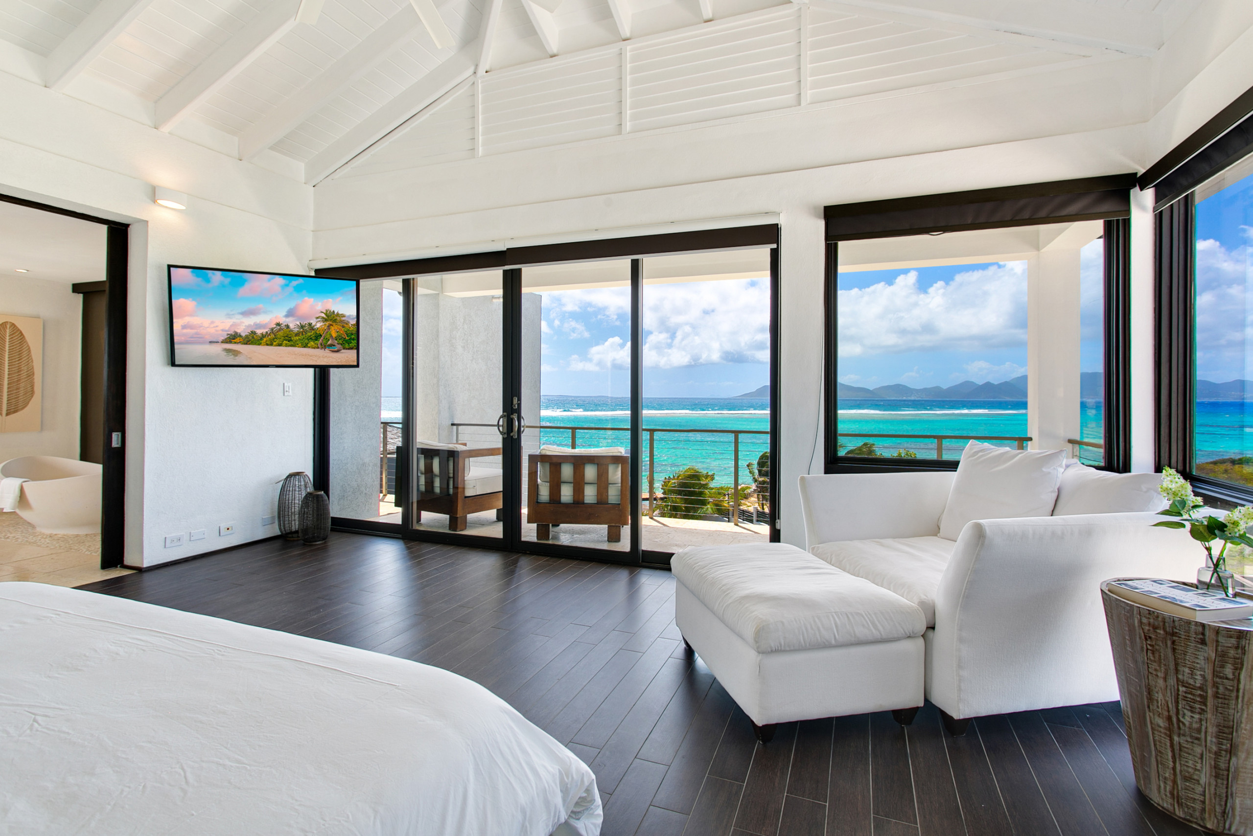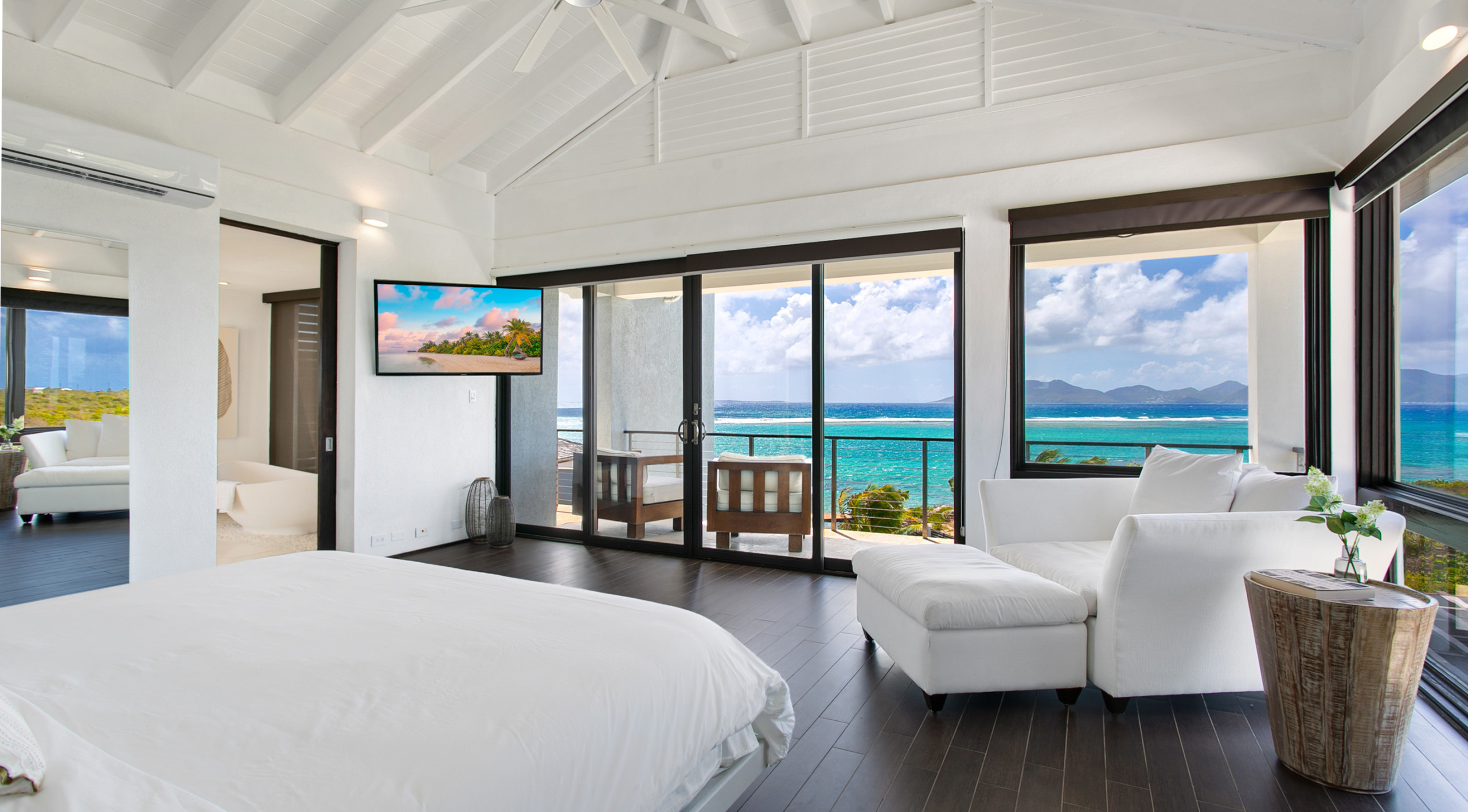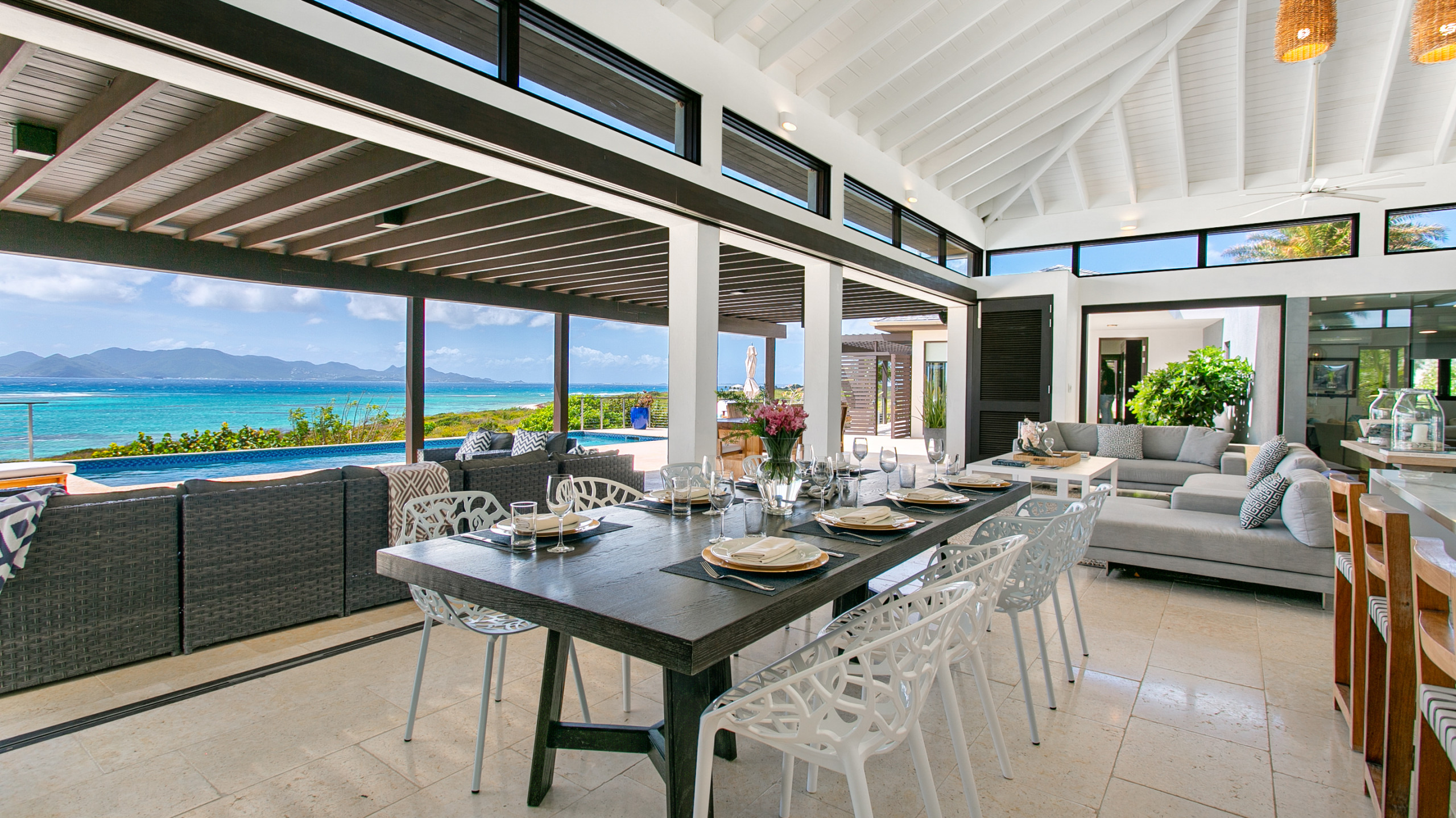 Villa Anani is an opulent four-bedroom retreat on the southern coast of Anguilla in Little Harbour, part of the exclusive Kamique Villas Estate. Situated directly overlooking the Caribbean Sea, while offering breathtaking views of the mountains of St. Maarten from nearly every room. Designed with modern open floor plans and island-inspired furnishings, Villa Anani seamlessly blends indoor and outdoor living, featuring expansive windows, sliding doors, and an outdoor shower to celebrate the West Indian lifestyle.