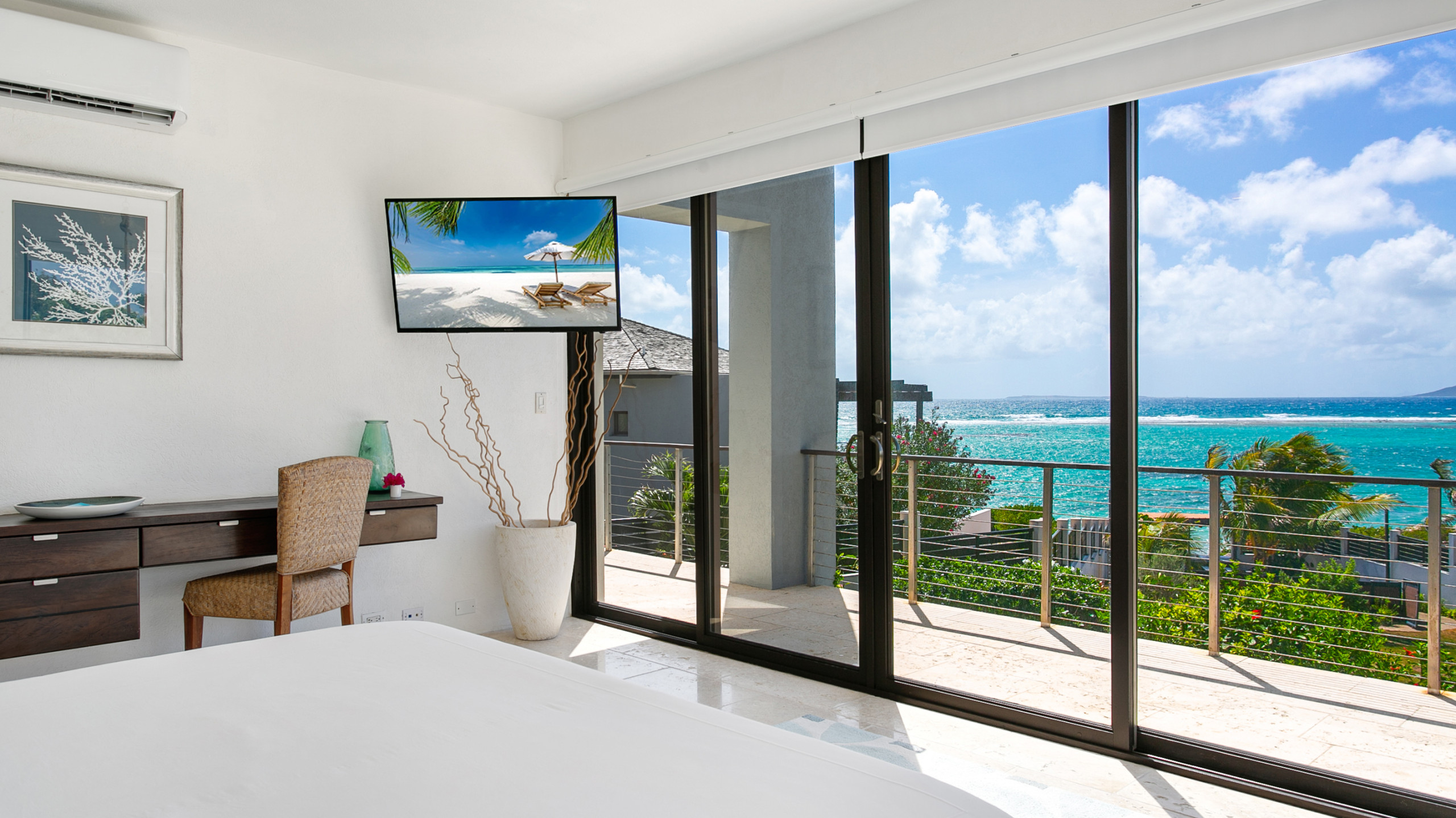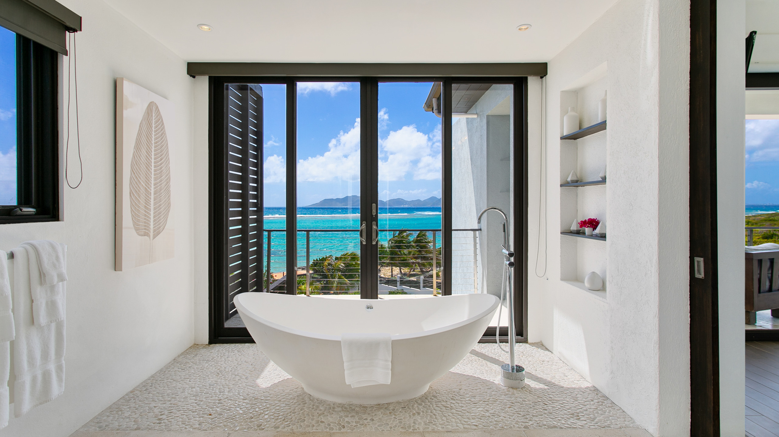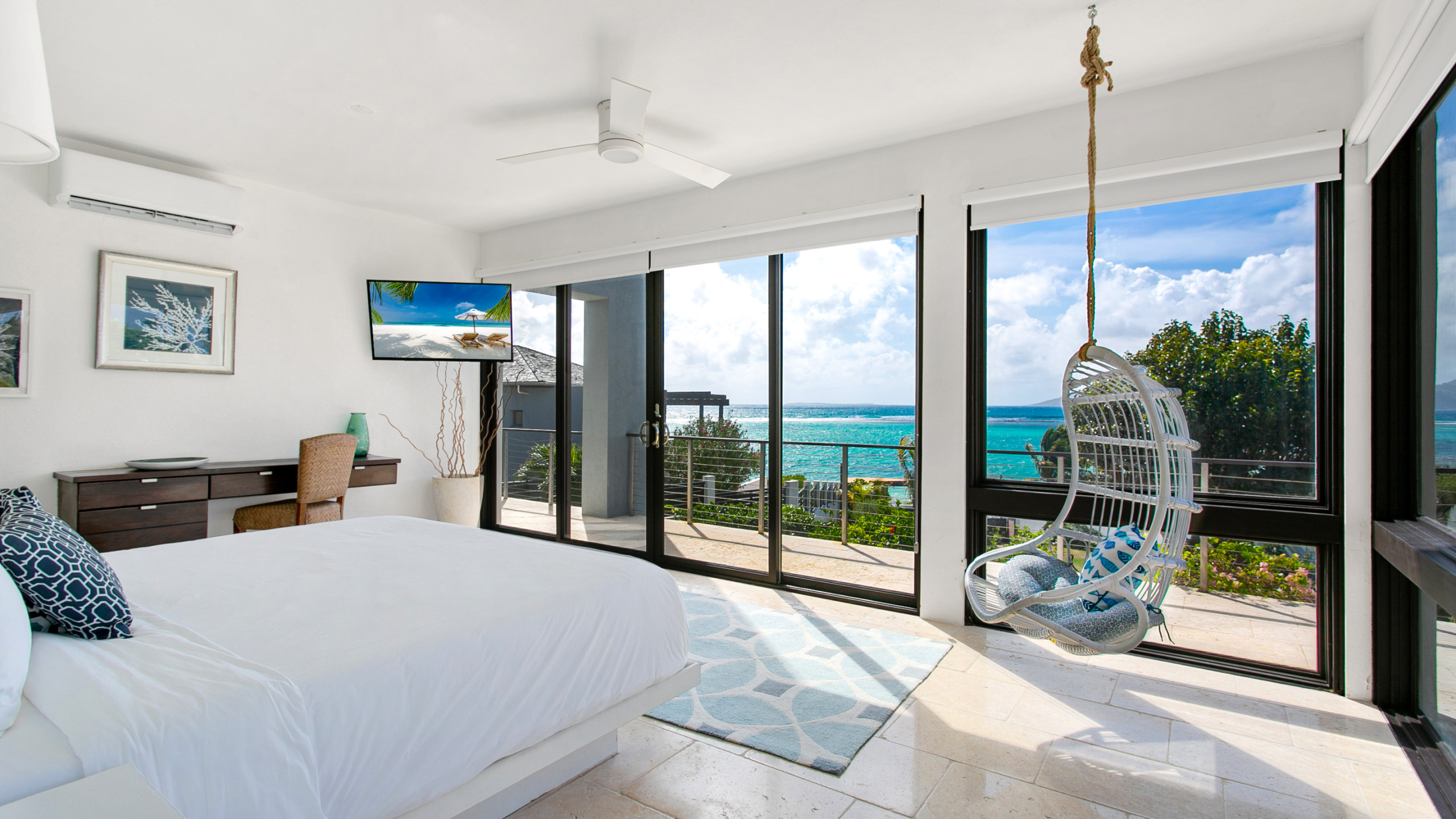 Villa Anani is an opulent four-bedroom retreat on the southern coast of Anguilla in Little Harbour, part of the exclusive Kamique Villas Estate. Situated directly overlooking the Caribbean Sea, while offering breathtaking views of the mountains of St. Maarten from nearly every room. Designed with modern open floor plans and island-inspired furnishings, Villa Anani seamlessly blends indoor and outdoor living, featuring expansive windows, sliding doors, and an outdoor shower to celebrate the West Indian lifestyle.