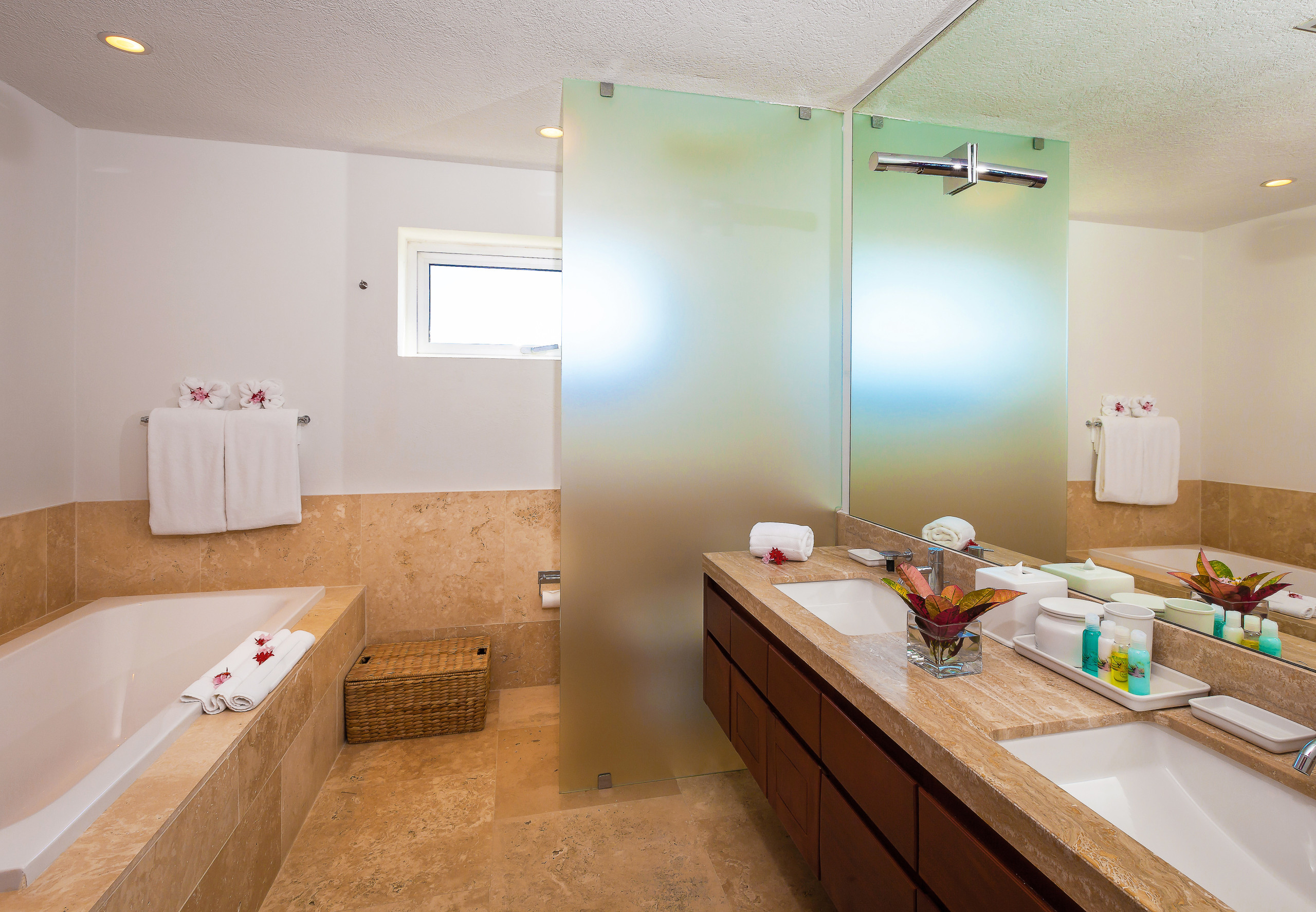 Optional services include, chef, butler, childcare, massage, excursions, car rentals, air and boat transfers, grocery shopping, celebration décor, florals, music/entertainment, restaurant reservations, tee times, and more. We can provide options and pricing.