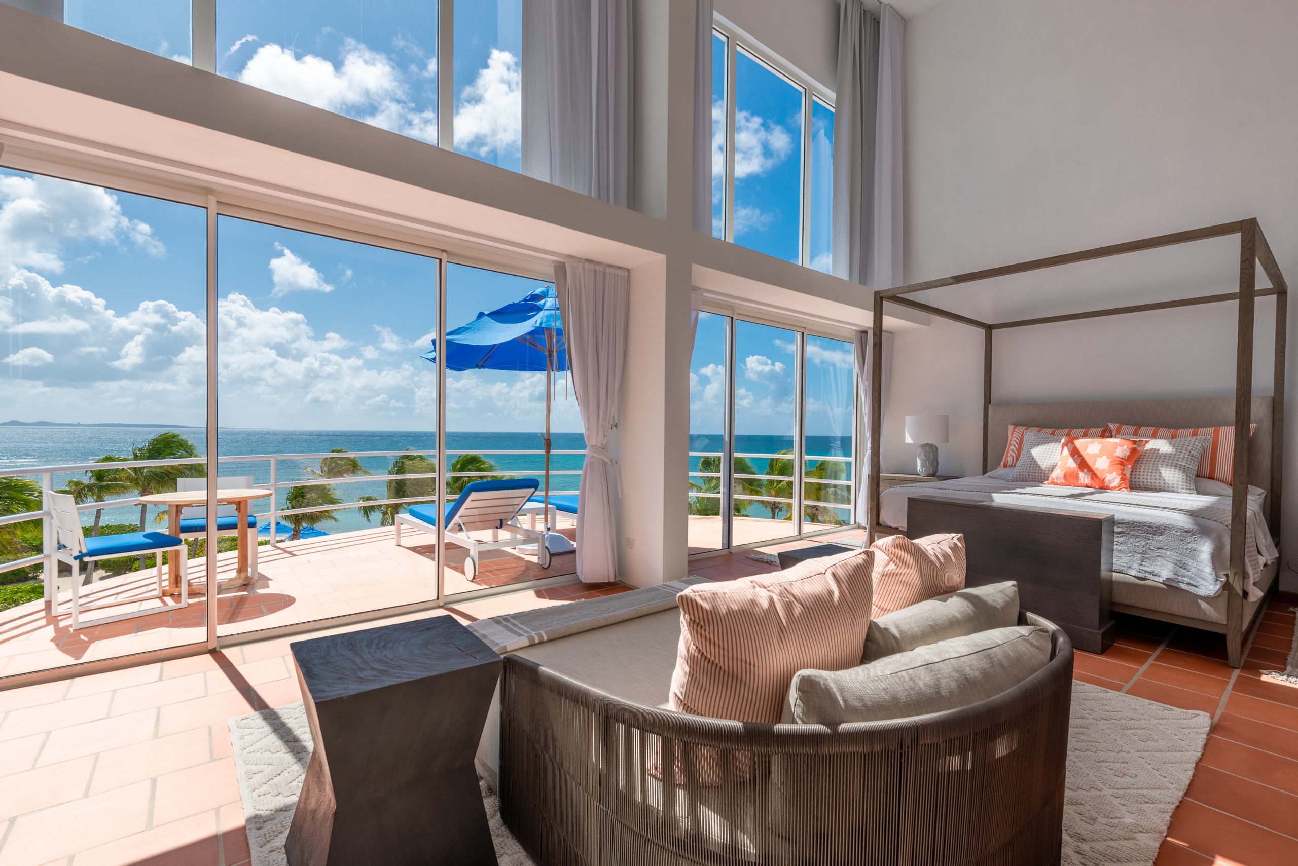 Antilles Pearl’s exterior is equally breathtaking, featuring a heated swimming pool, shaded dining area, and multiple lounge spaces. A 50-foot skywalk overlooking the Caribbean gives the sensation of floating above the sea, while the rooftop terrace offers the perfect perch for sunset cocktails, stargazing, or enjoying the gentle ocean breeze.