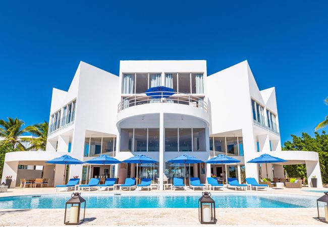 Blue Diamond is a spectacular 13,000 sq. ft. villa that seamlessly blends modern design with luxurious comfort. Newly renovated in November 2021, this architectural masterpiece features a unique flower-shaped layout, allowing each level to radiate from a central common area into private “petal” alcoves, perfect for large groups seeking both togetherness and privacy.