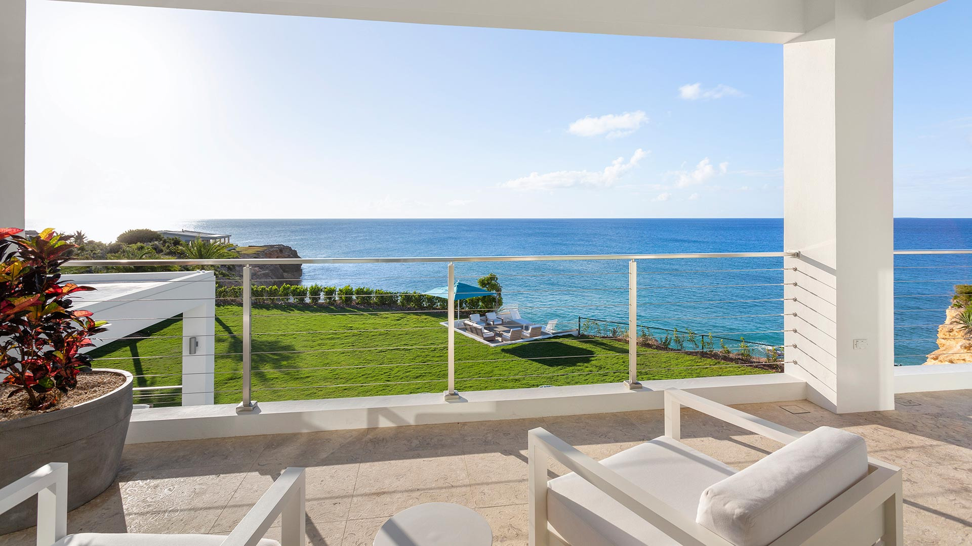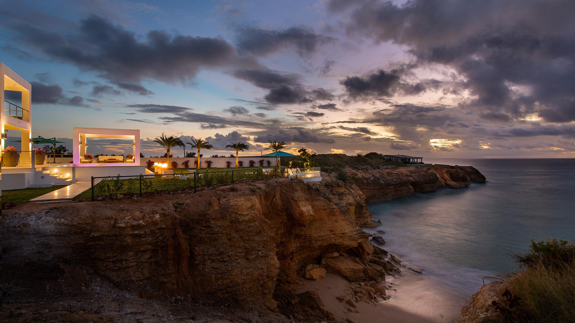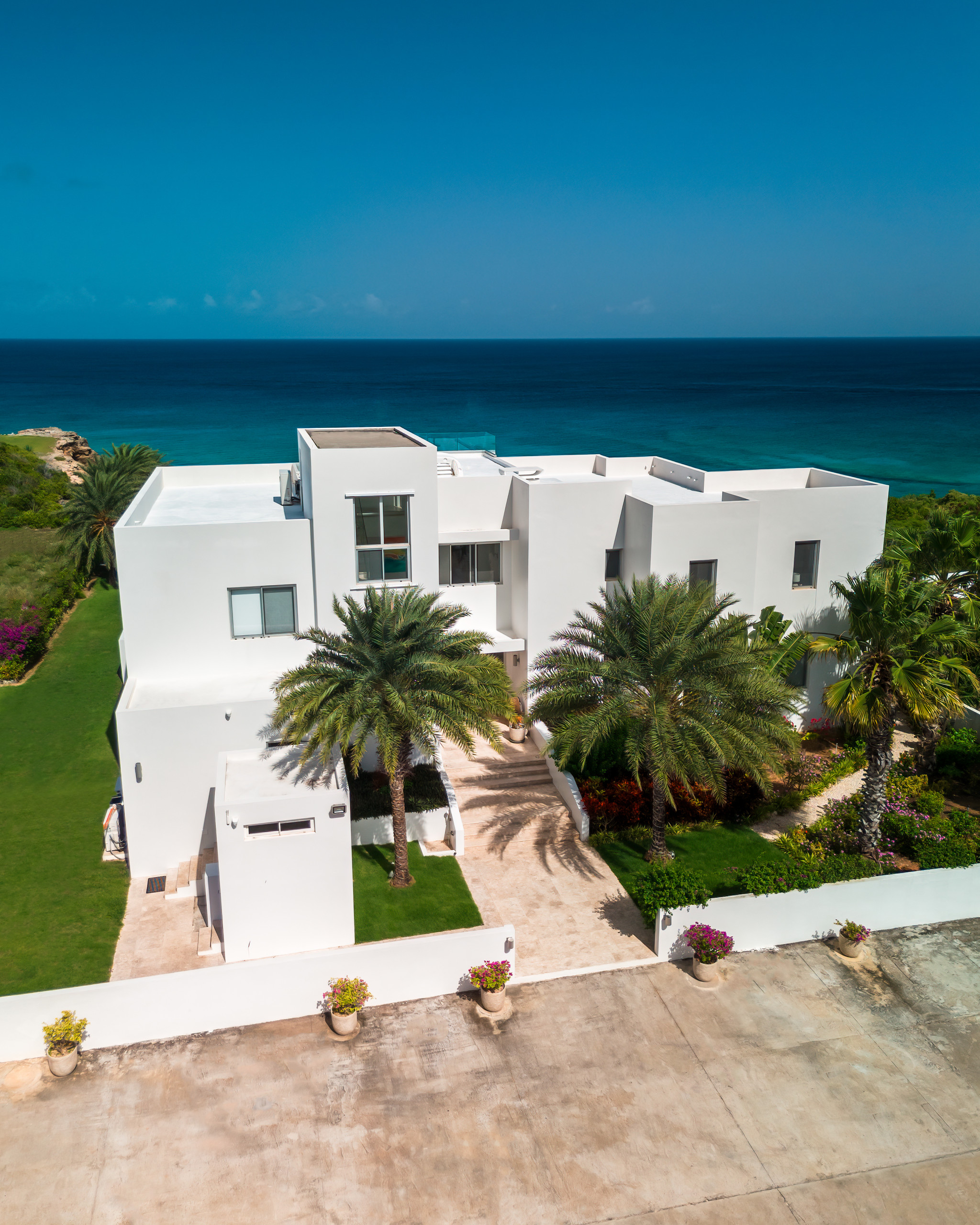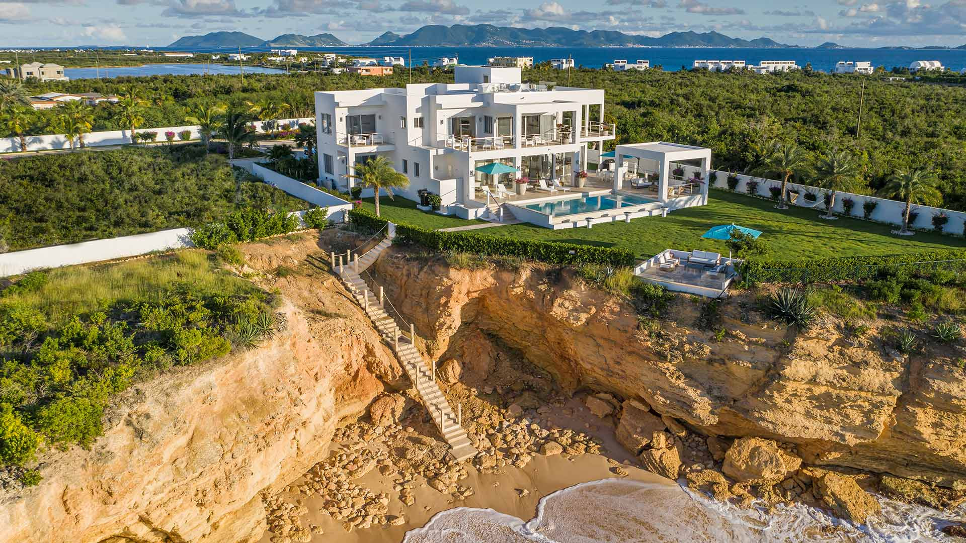 Perched atop the dramatic cliffs of West End, Kandara is an extraordinary eight-bedroom luxury villa that perfectly captures the beauty and serenity of Anguilla. Spanning over 10,000 square feet, the villa offers sweeping Caribbean views, exceptional privacy, and the ultimate blend of contemporary design with Caribbean charm. Floor-to-ceiling doors, expansive terraces, and multiple balconies allow natural light and ocean breezes to flow throughout, creating a seamless connection between the indoor and outdoor living spaces. The villa’s cliffside outdoor living room and elevated terraces provide panoramic vistas of the turquoise waters below, while a heated infinity pool, Jacuzzi, and sun-drenched lounging areas create the ideal setting for relaxation and entertaining.